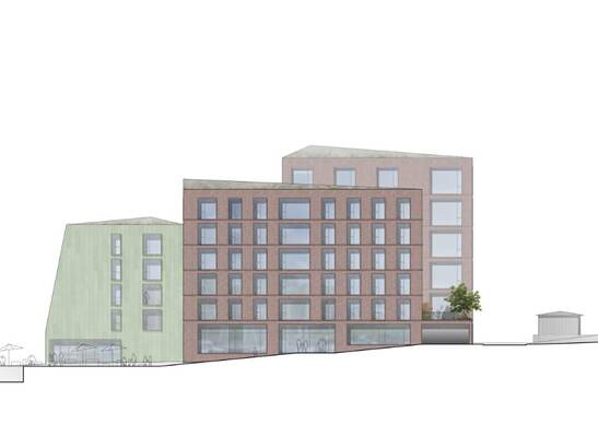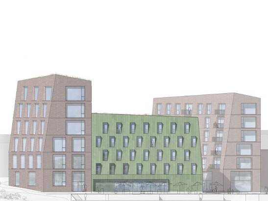 At the southern tip of the Westhafen Neustadt, an ensemble of buildings is being created that will act as a new point of attraction and as the end of the promenade. The diverse uses of the buildings will turn this place into a lively meeting space and thus create a new identification with the harbor.