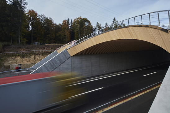 It took a long time to convince them: more than 20 years ago, Stefan Zöllig demonstrated that wood is the right choice of construction material for green bridges. Now it has been built, the first wildlife bridge made of wood. More will follow.