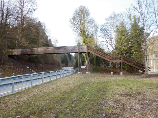 Large parts of the Horgen pedestrian bridge over the Sihltalstrasse had to be replaced. Many central wooden elements of the crossing were in poor condition.
