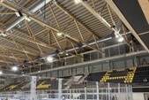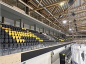 The facility comprises nine VIP boxes, each seating up to ten people, and an open area that can accommodate around twenty guests. The boxes are discreetly integrated between the trusses of the existing roof. This ingenious arrangement makes it possible to make optimum use of the available space while preserving the visual lightness of the structure. Spectators can enjoy an exceptional view of the ice rink in a cozy and exclusive environment, where wood and glass create an elegant and contemporary atmosphere.